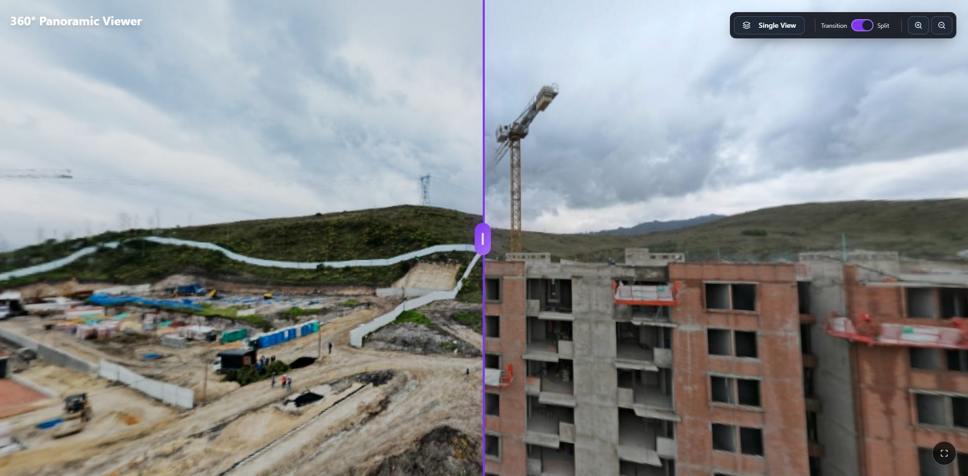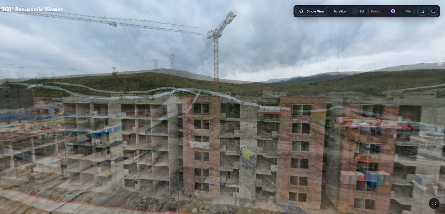 Single View Toggle: Simple buttons that allow the user to instantly switch between the full "before" and "after" panoramas. This is perfect for quick, direct comparisons without any visual clutter.